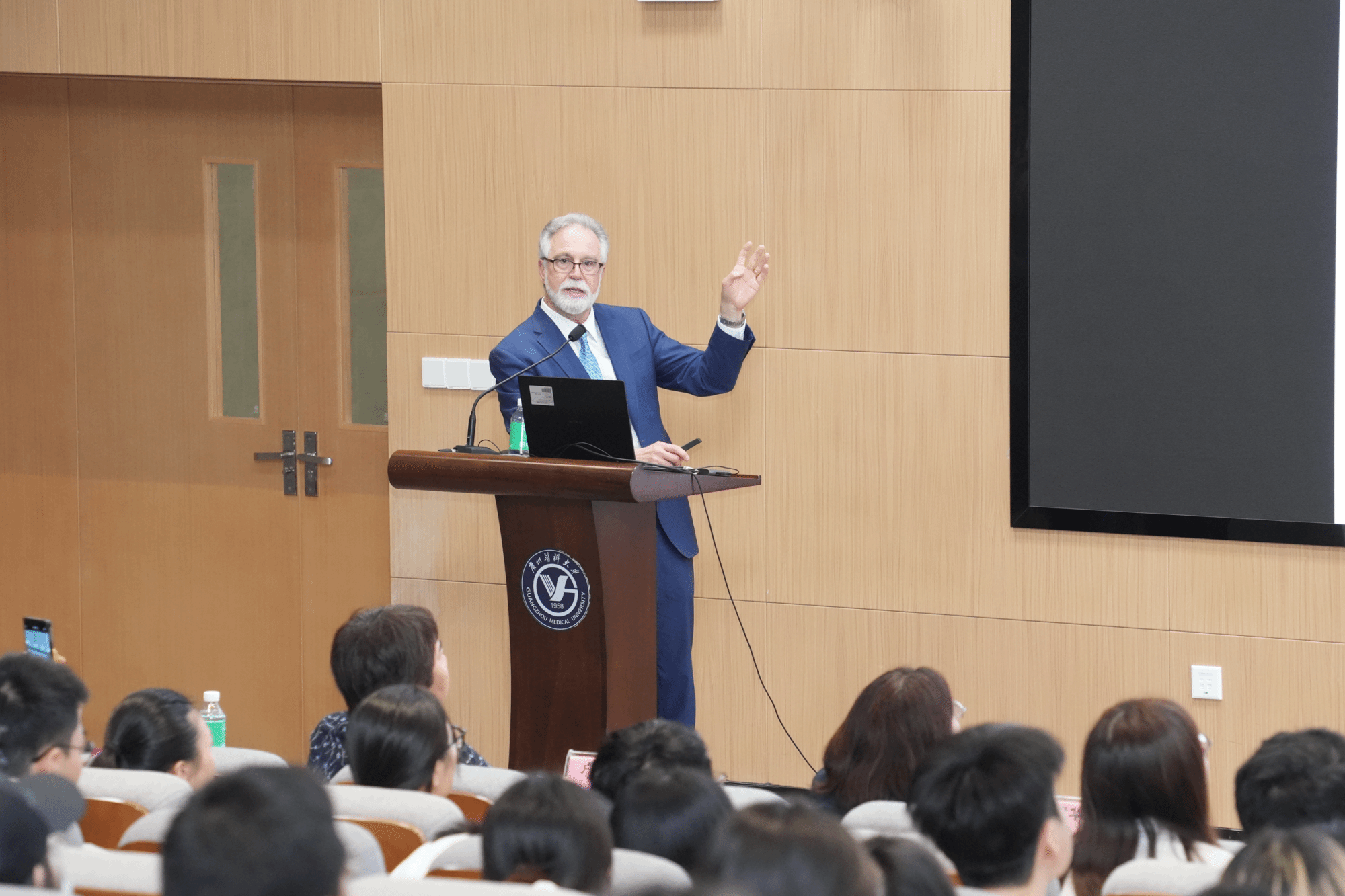 At the university’s Panyu Campus, Prof. Semenza delivered a lecture titled Hypoxia-Inducible Factors in Physiology and Medicine to Nanshan Scholars, postdoctoral researchers, and graduate students. In his lecture, he reviewed the discovery of hypoxia-inducible factor-1 (HIF-1), its role in disease development—including cancer and hypoxic pulmonary arterial hypertension—and the prospects for translational applications targeting related signaling pathways.